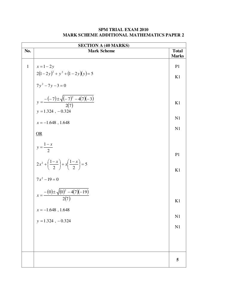 5 Marks Scheme For Add Maths Paper 2 Trial Spm